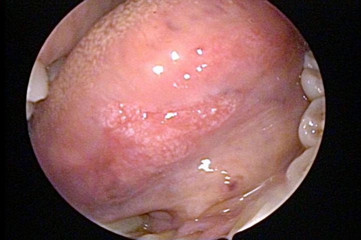 역시 수술자의 경험과 능력에 따라 달라지겠지만, 저는 은사이신 분당서울대병원 이비인후과 정우진 교수님께 배운 요오드/포타슘요오드 용액(루골) 염색을 이용해서 병변의 경계를 확인합니다. 이 경계는 ‘암’의 경계라기 보다는 이형성(dysplasia, 전암단계)의 영역을 보는 방식으로, 염색 후 관찰되는 경계를 모두 포함할 수 있다면 암세포를 놓치지는 않을 것이라고 판단하게 됩니다. 다만, 이 방식은 암의 경계보다 훨씬 넓게 보이게 되기 때문에, 오히려 불필요한 부분을 제거하게 되는 단점이 있을수도 있어서 모든 수술자들이 사용하는 방식은 아닙니다.